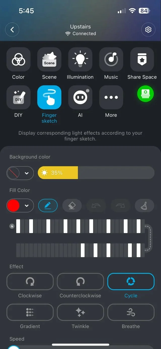 Activate preloaded lighting effects like Meteor, Fireworks, Aurora, and more.