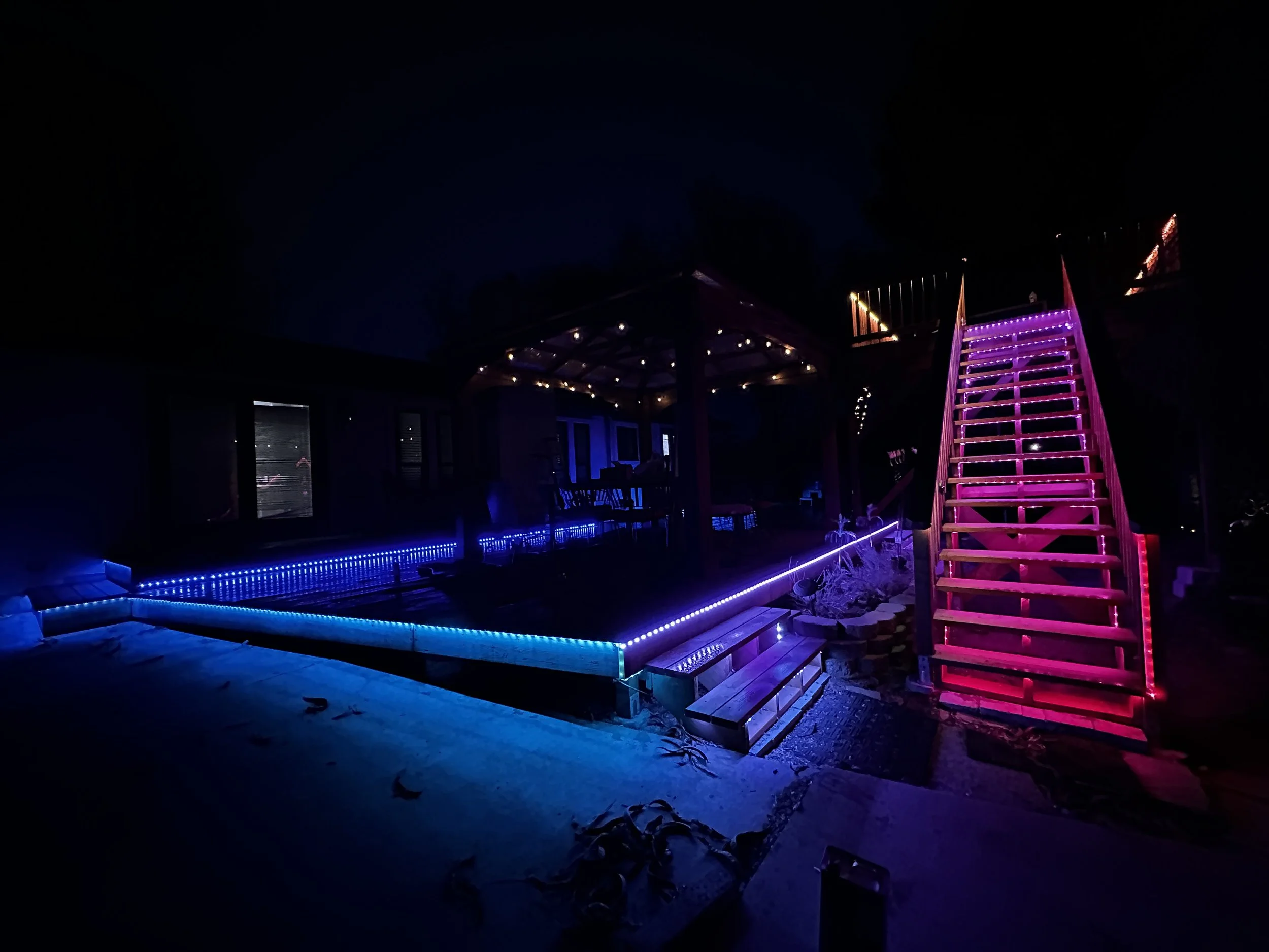 “Our permanent lighting came out better than I could’ve ever imagined. Ivan designed custom tracks specifically for our home and it integrated perfectly. Our backyard deck and staircase lighting was also phenomenal and beyond what I thought was possible! These lights are going to be perfect for the summer nights to come.”